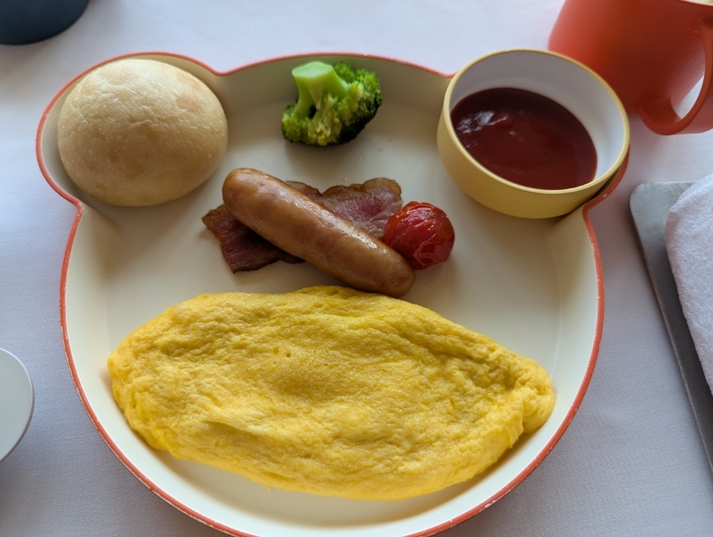 インルームダイニングは全体的に温かみがあり、ホテルメイドの味わいをそのまま客室で楽しめるのが特徴。パンの香ばしさ、卵のしっとり感、肉類の火入れまで計算されており、大人も一緒に満足できるレベル。子供向けながら“手抜きのないリッツ品質”が貫かれている。